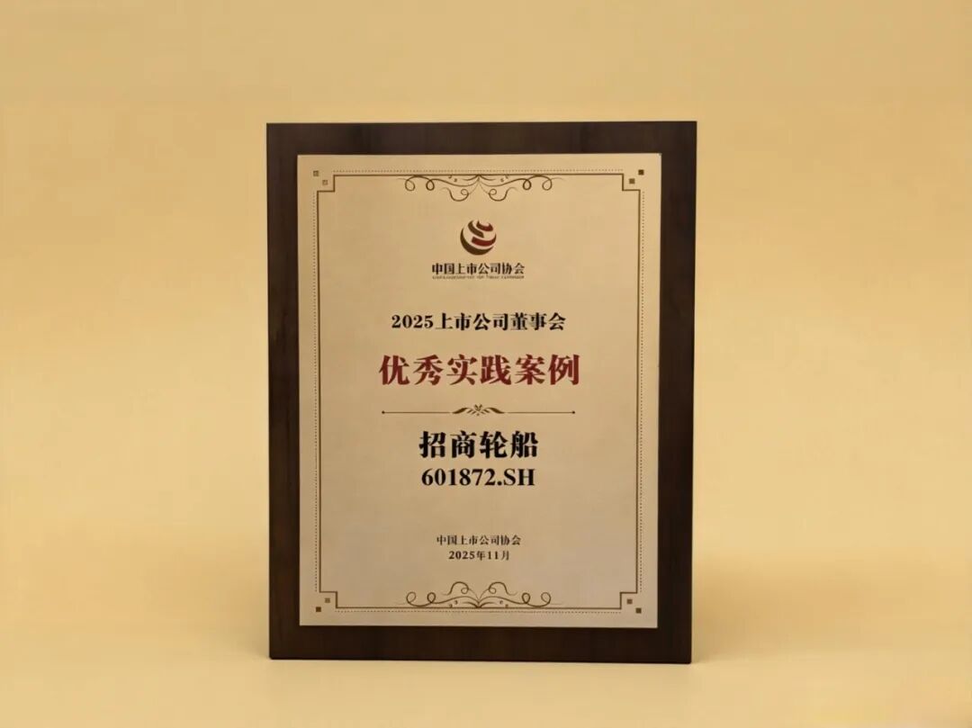 近日,中国上市公司协会(简称中上协)公布"2025上市公司董事会优秀实践案例"评选结果,招商轮船凭借在公司治理、科学决策及投资者关系管理等方面的卓越实践,获评"2025上市公司董事会优秀实践案例"。