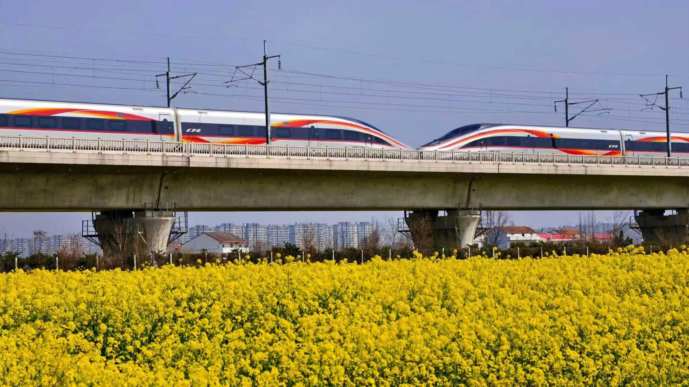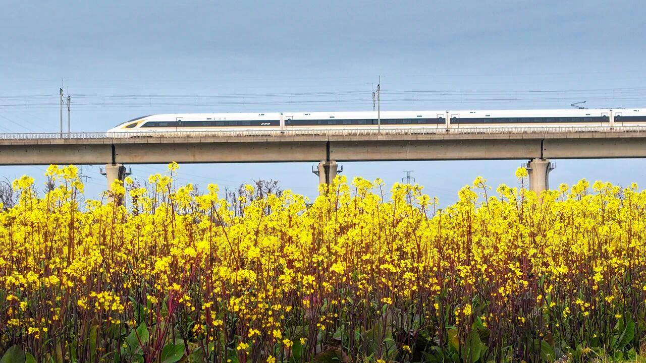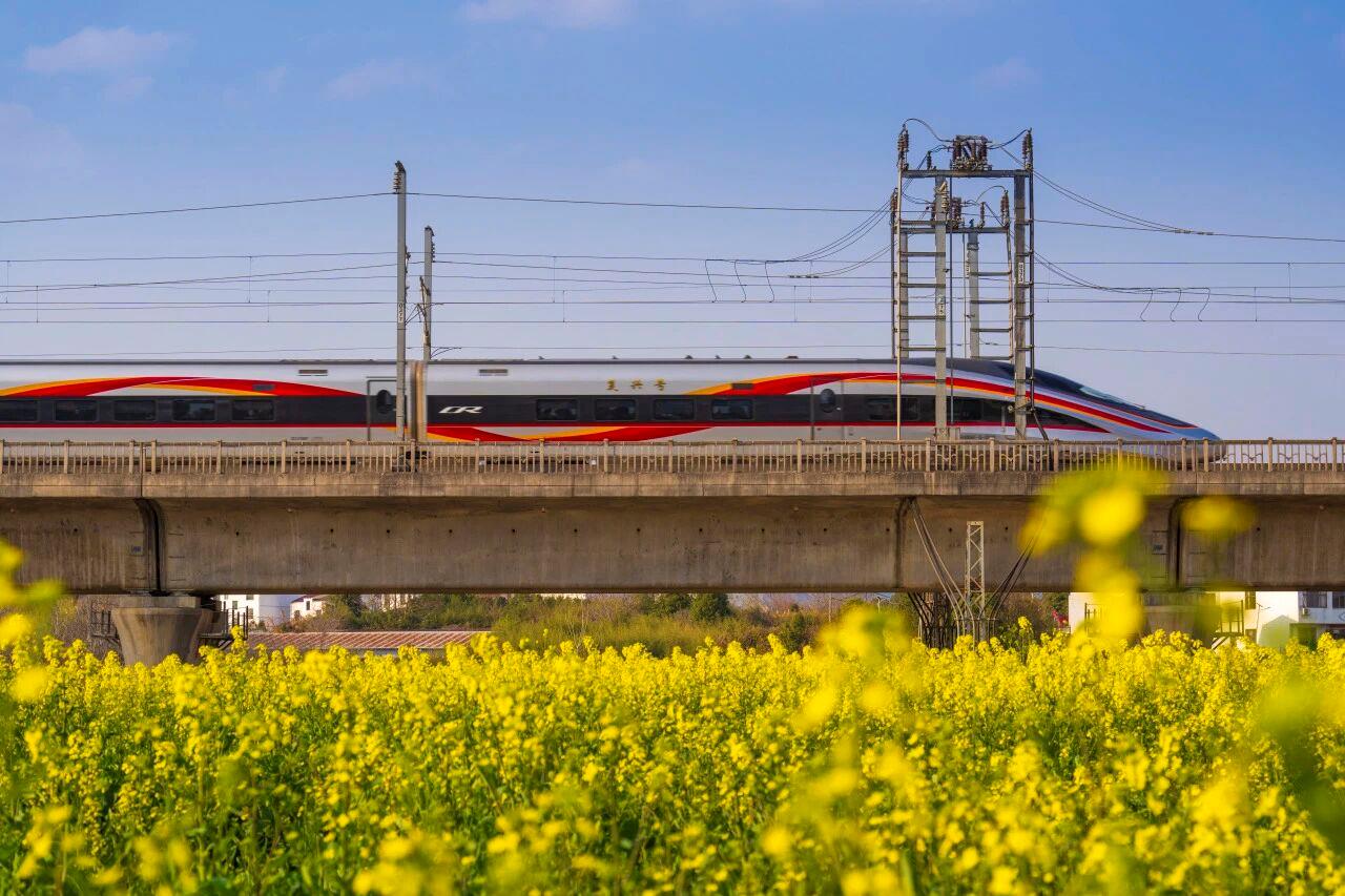 △复兴号与花海相映,科技与美感并存。