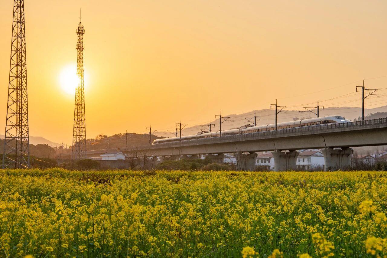 从杭州南站到南昌东站,杭昌高铁串联起浙江与江西两省的风光。沿线风景有杭州的西湖胜景、瓷都景德镇的千年窑火,还有南昌的英雄城底蕴。一路河湖密布、青山连绵,春日油菜花海与江南古村、黛瓦白墙相映成趣。