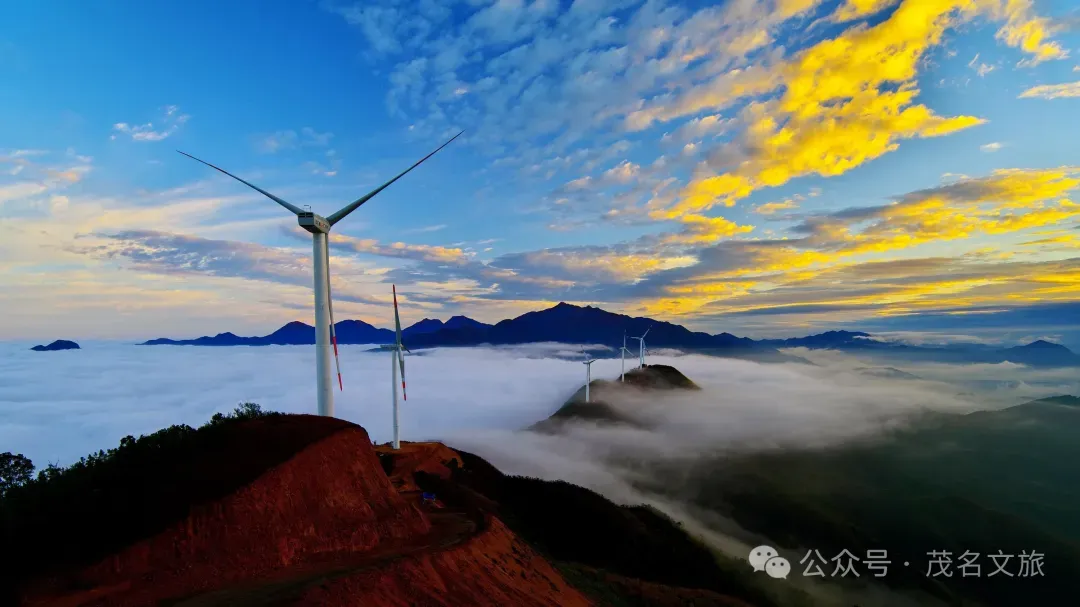 ●电白区“云上南清”以海拔650米的云海秘境洗净尘心,风车群下的星空民宿与霞光茶园共绘山野浪漫。